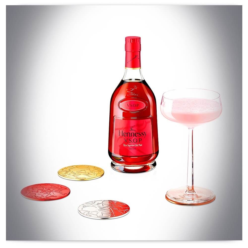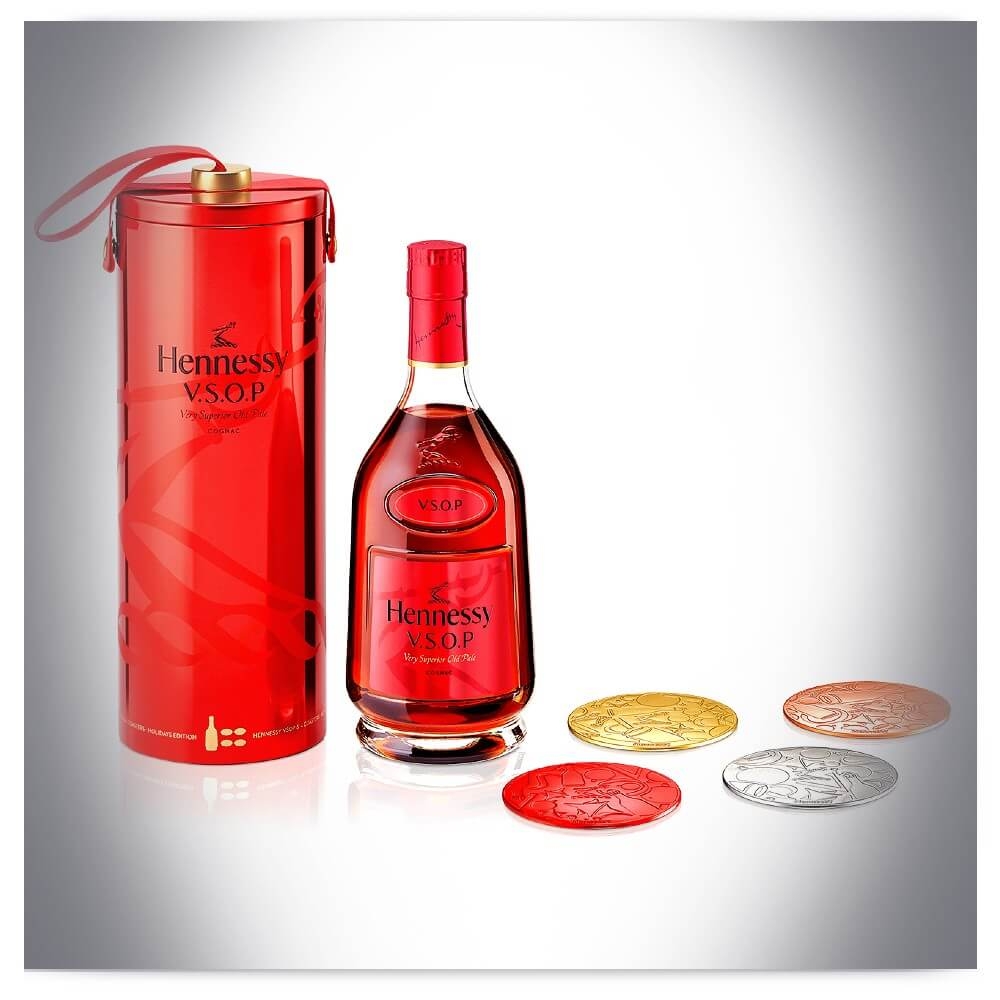Limitowana edycja Hennessy V.S.O.P Privilège Holidays z czterema podstawkami pod szklanki.